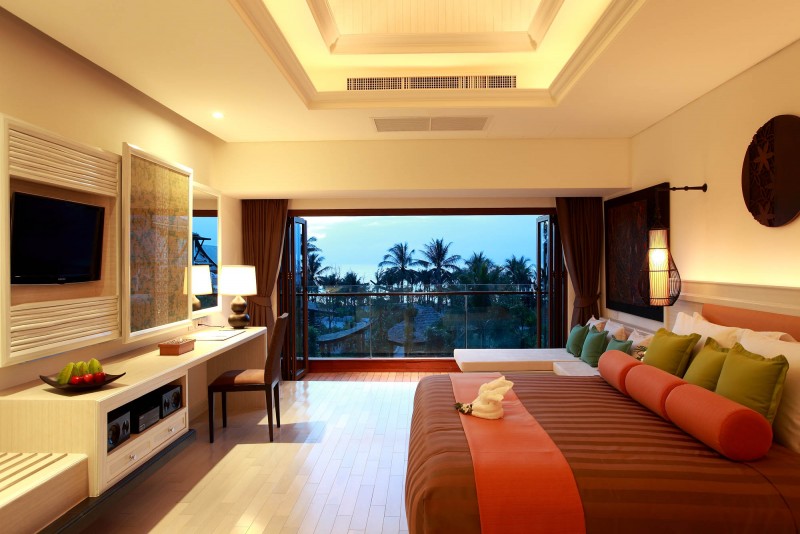 La struttura dispone di 56 camere, tutte molto ampie e di varie tipologie, caratterizzate da interni arredati con gusto ed impreziosite da una combinazione di elementi orientali ed occidentali. Tutte dispongono di balcone o terrazza con vista sul mare, servizi privati con vasca e doccia separate, aria condizionata, telefono, radio, tv lcd con lettore dvd, collegamento internet wi-fi gratuito e cassetta di sicurezza.